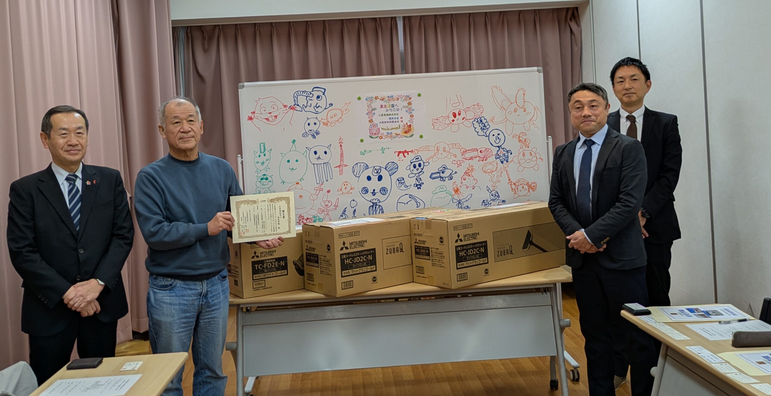 今回の寄贈は、三菱電機株式会社関西支社様より大阪府内の児童養護施設に寄贈を行いたいとの依頼があり実現しました。